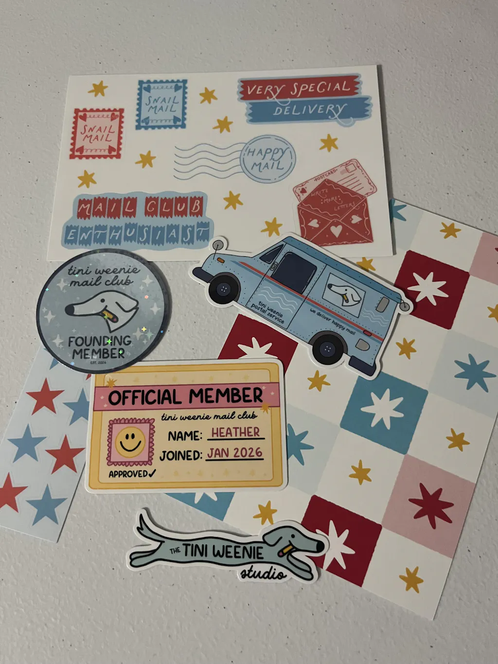 Sign up by the 10th to get that month's mail, or join after the 11th and your first box ships the following month. You'll be charged on the 11th monthly, and I'll get everything packed and shipped via USPS First Class as soon as I can after the deadline. Allow up to 14 business days for US members and 4 weeks for international members. Heads up: mail club orders don't include tracking!